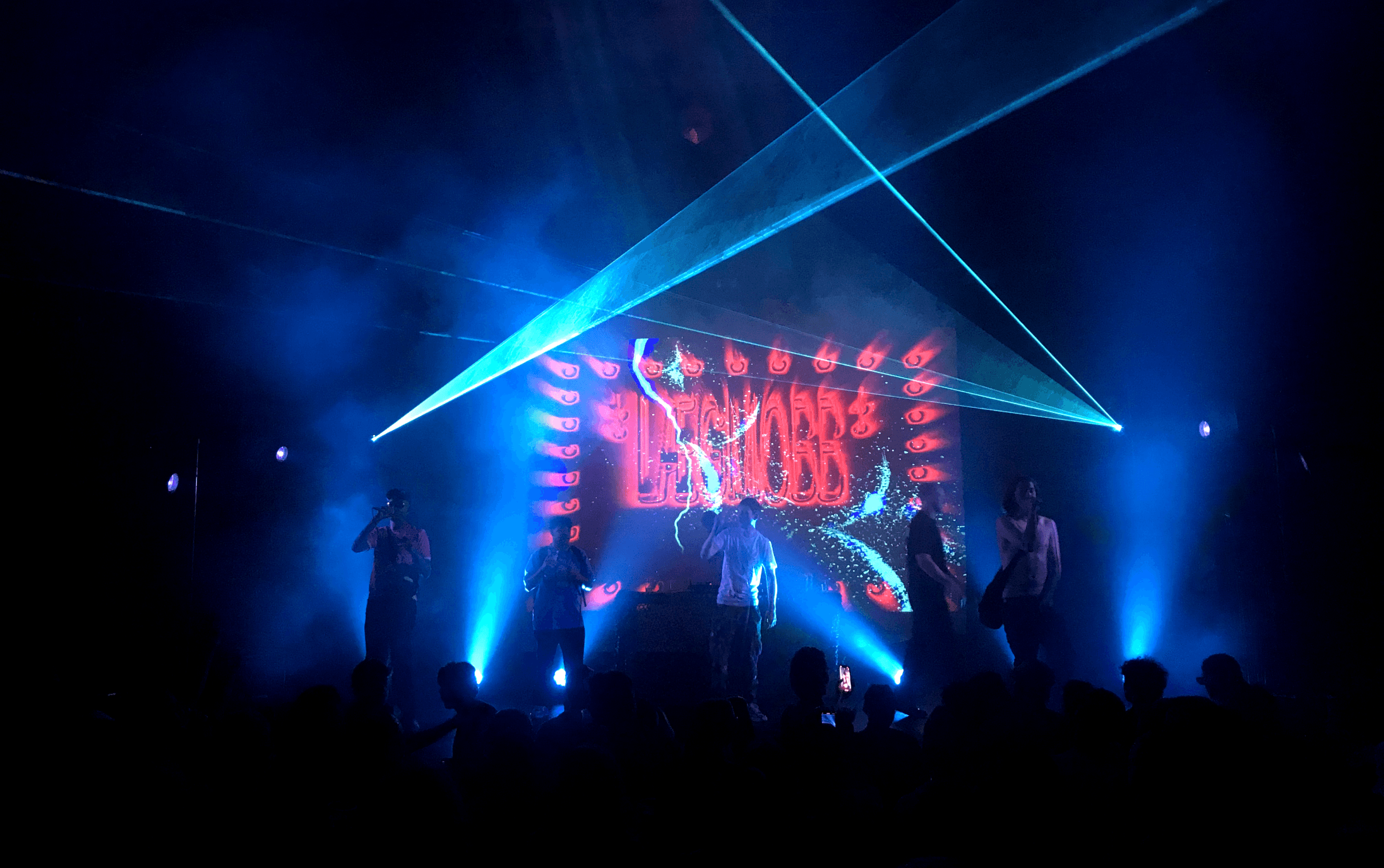Combination of video and programmed visuals for Læggmobb x Wavyclub at Parkteatret in Oslo.