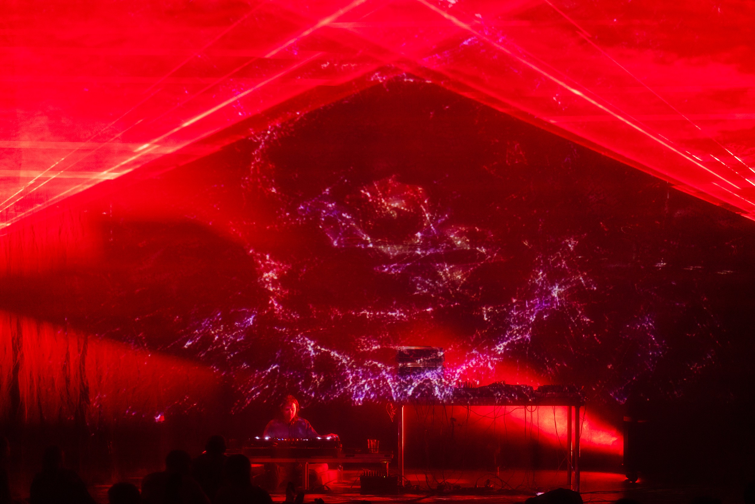 Programmed and live projected visuals for Aural Connection at Munch museum in Oslo. Dual projection on a netting surrounding the stage. Ekkel (dj set) Omformer (live set) Marius Bø (dj set)